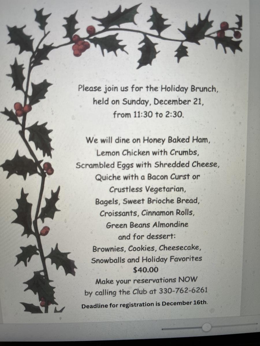 Christmas Buffet: Sunday December 20th from 11:30-2:30.